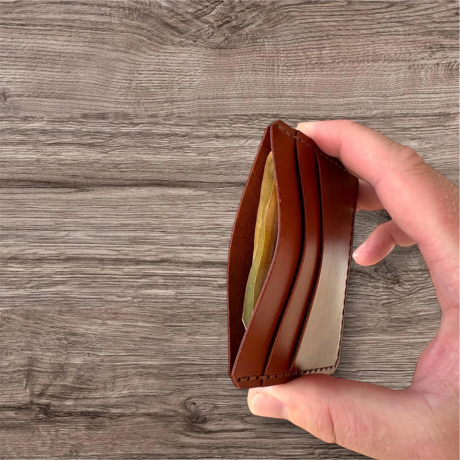 Made from **genuine Italian Buttero leather**, known for its durability, rich texture, and deep color. Over time, the leather develops a beautiful **patina**, making your cardholder even more unique.